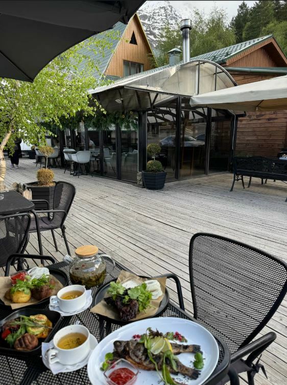 Гостям нравится местная форель, приготовленная на гриле, а также шашлык из баранины. В ресторане царит теплая и гостеприимная атмосфера, которая дополняется аутентичным кавказским интерьером.