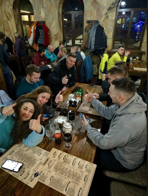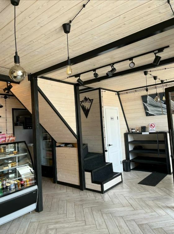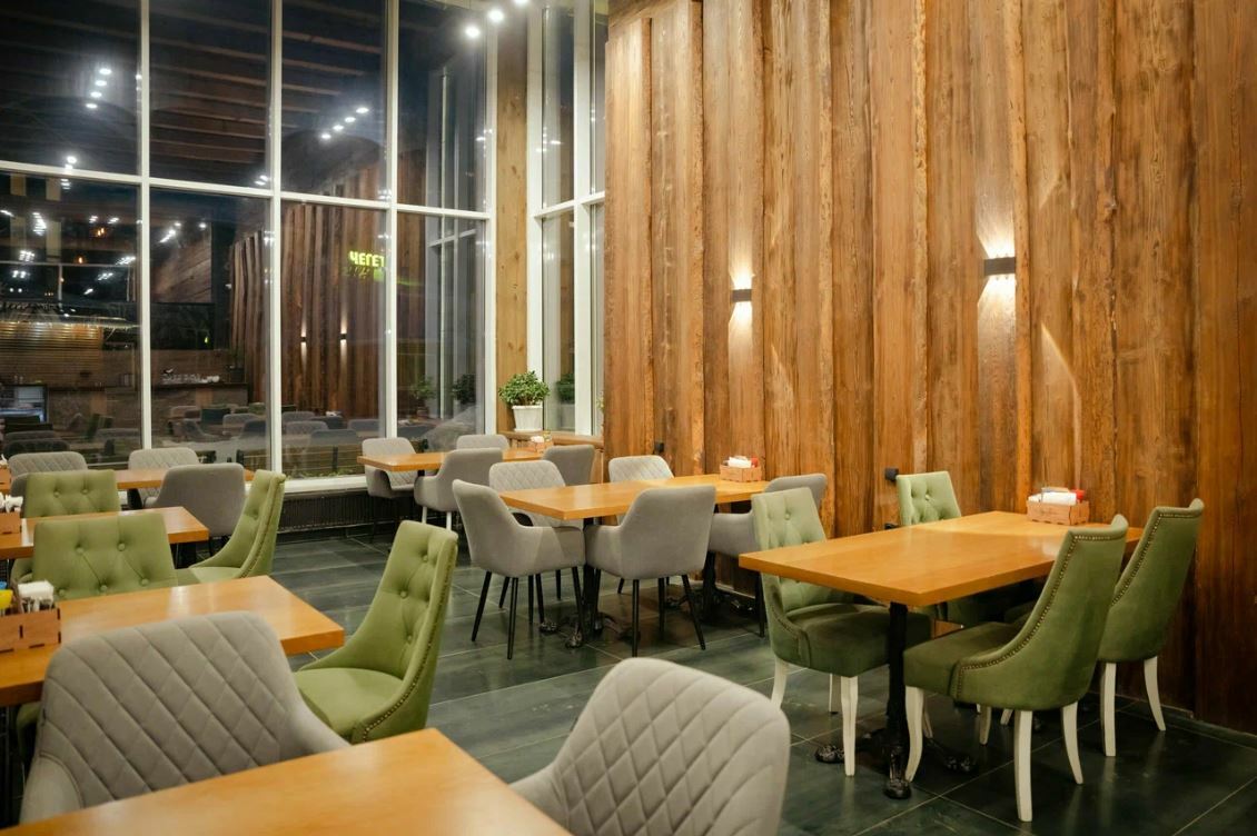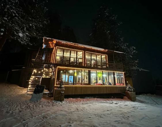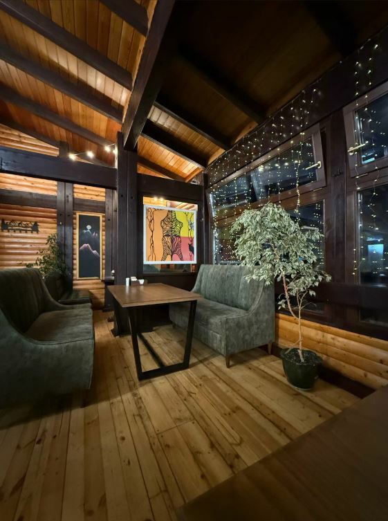 Ресторан Chalet — это уютное место с мягкими диванами и душевной атмосферой, где можно отдохнуть после катания на лыжах или сноуборде.
