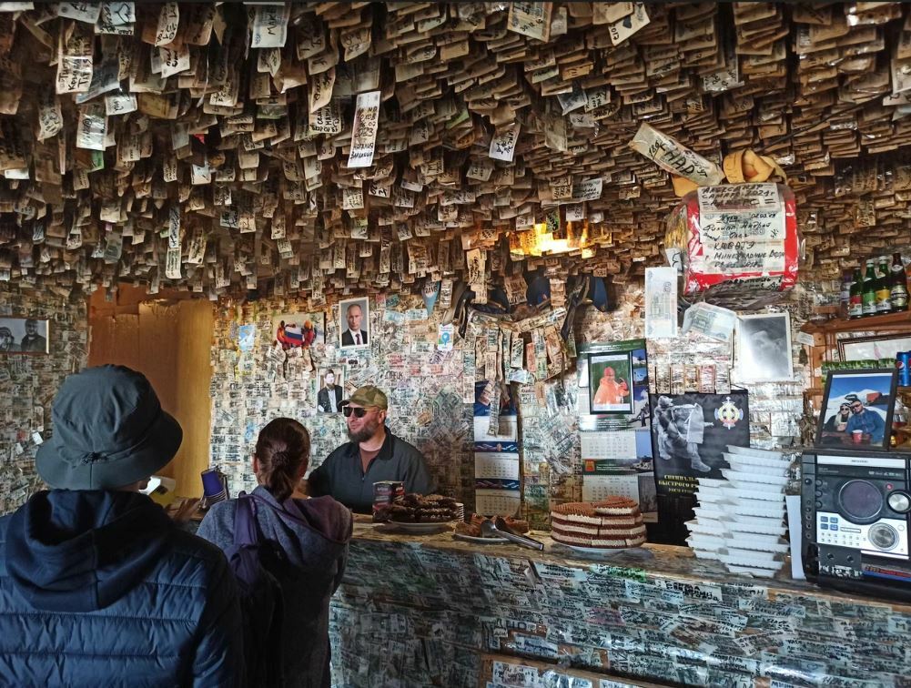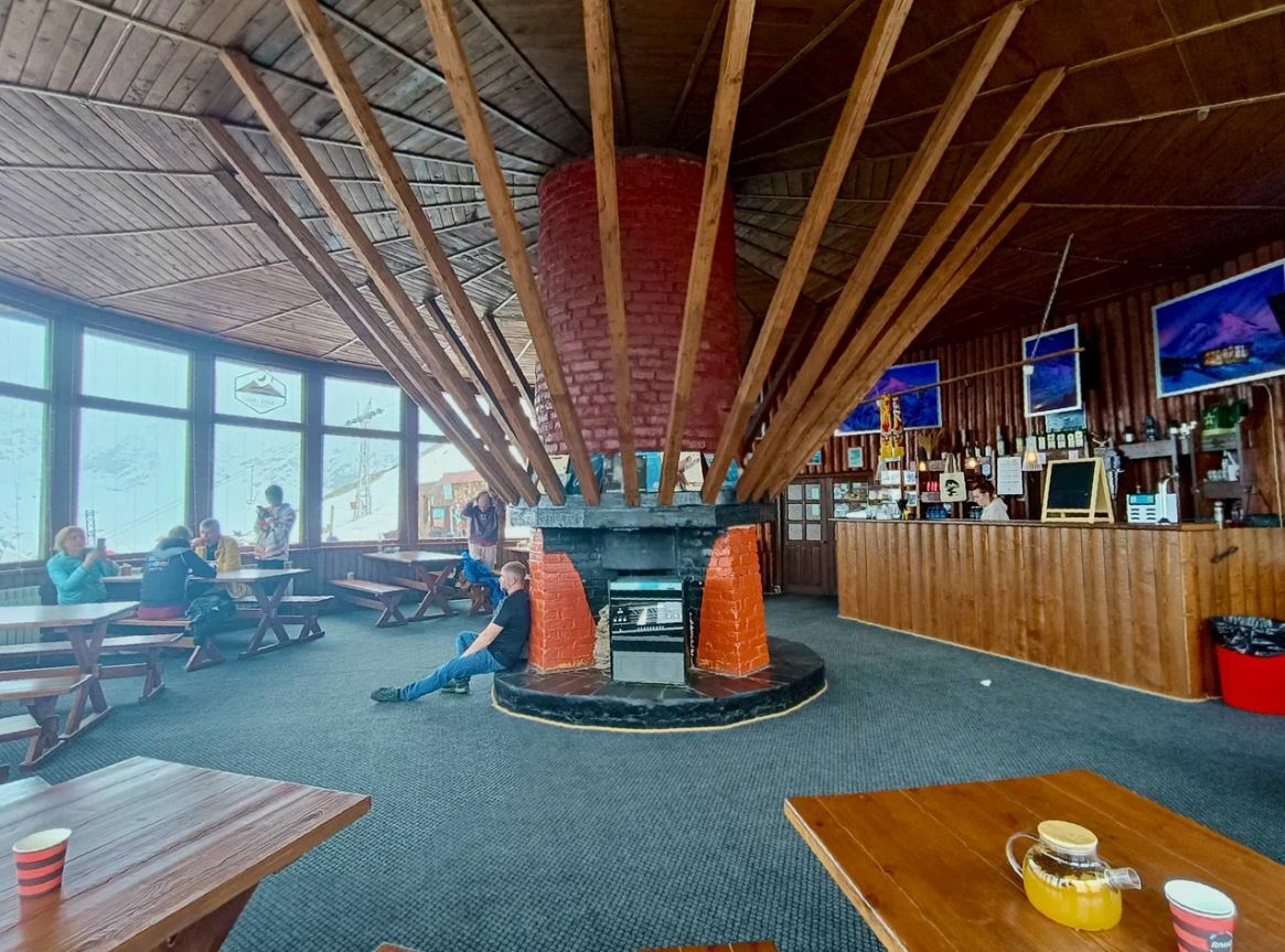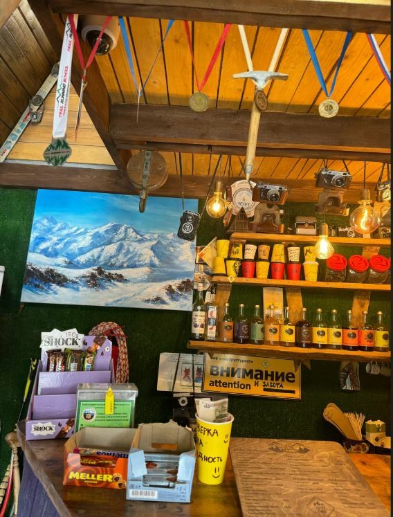 Кафе «Купол» — это атмосферное место с деревянными столами и стульями, где на стенах можно увидеть фотографии групп, которые восходили на Эльбрус. Хозяин кафе — Абдул-Халим Ольмезов, легендарный альпинист, который всегда встретит гостей с улыбкой.