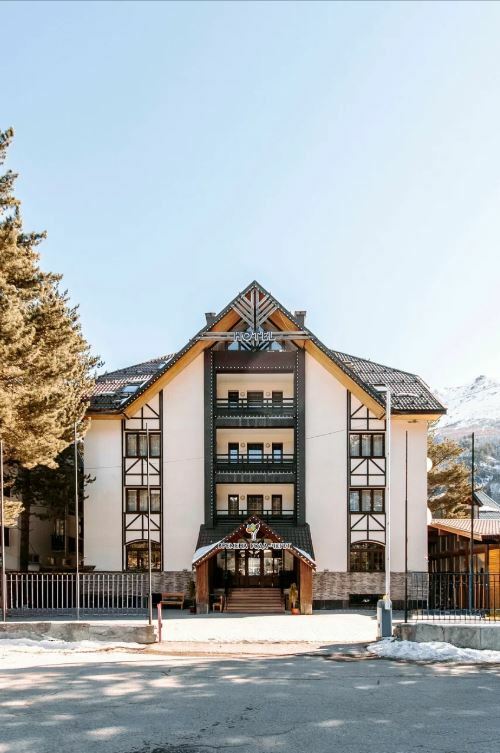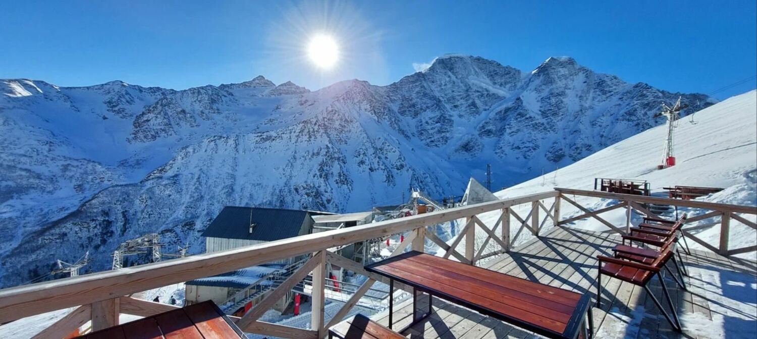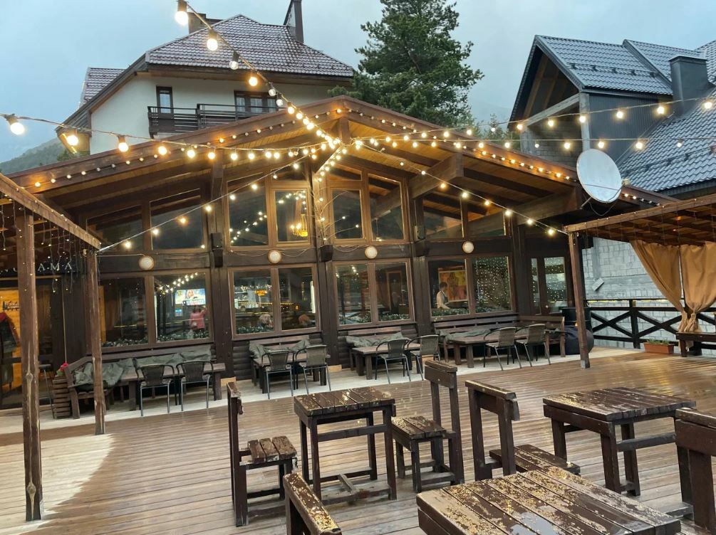 Ресторан «Когутай» — это место, где вы можете насладиться вкусной и разнообразной кухней, а также красивыми видами на горы Чегет и Эльбрус.