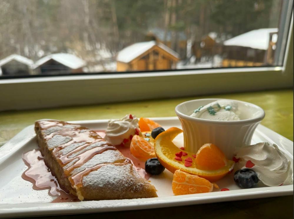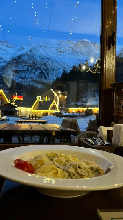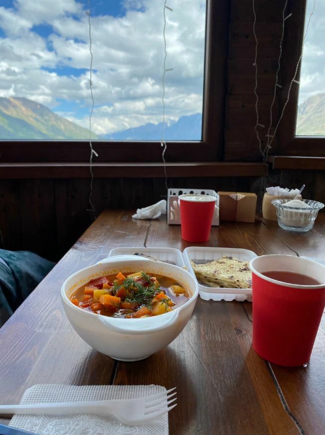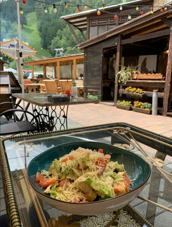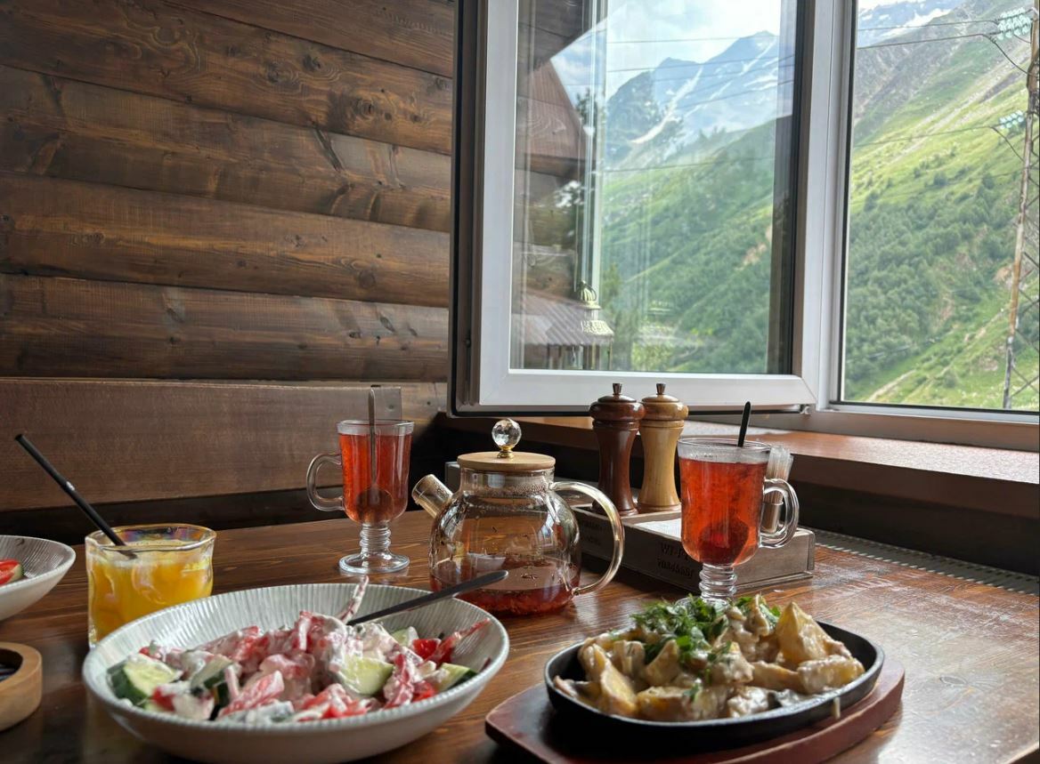 Кафе «Эдельвейс» — это уютное место с панорамными окнами, из которых открывается потрясающий вид на горы. В меню представлены блюда местной и современной кухни, такие как шашлык из баранины, хачапури по-аджарски, хычины, роллы и многое другое.