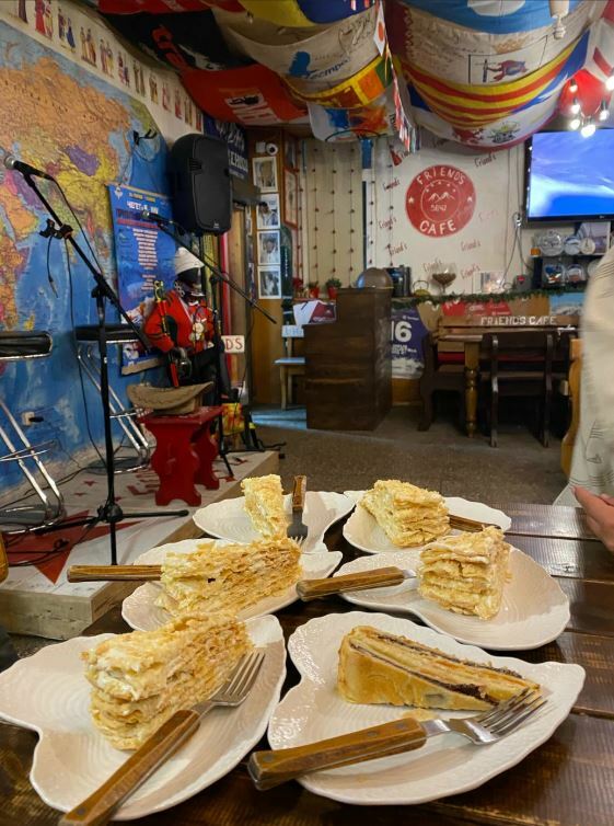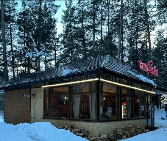 Кафе «Елена» — это уютное место с камином, где можно попробовать блюда балканской кухни, такие как вяленое мясо в сливочном соусе, шашлык, хычины и другие.