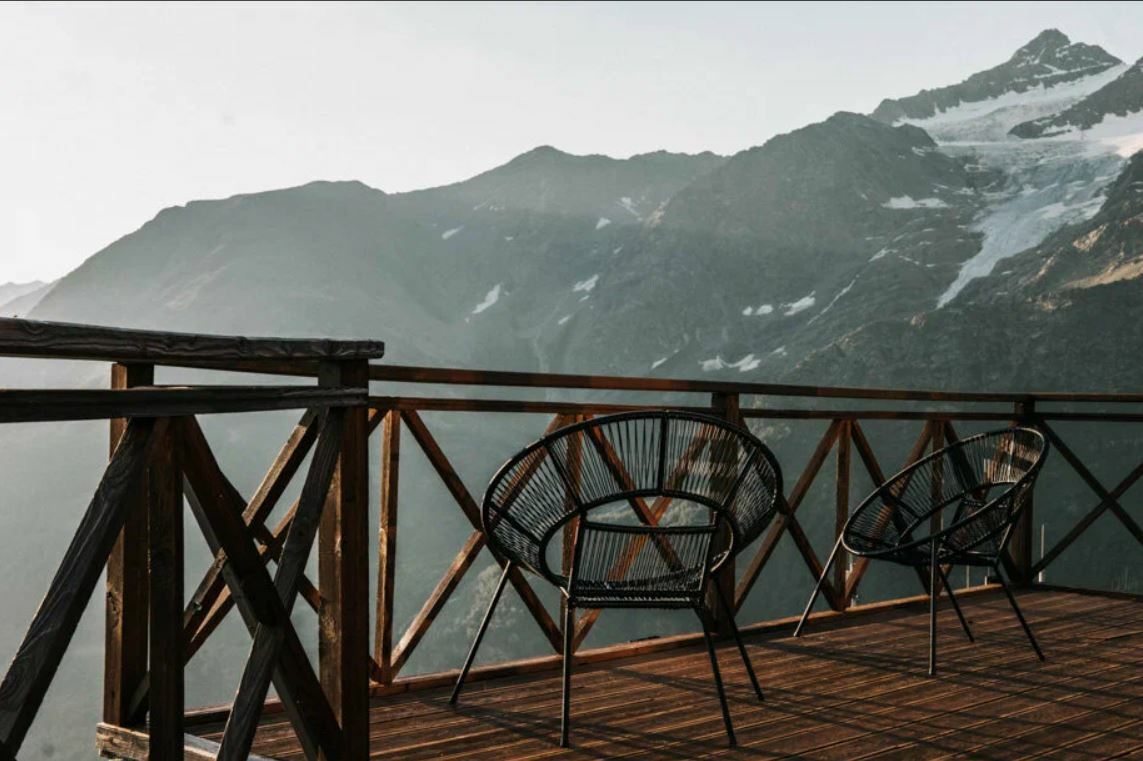 На пилегающей территории "палуба" с шикарным видом на Большой Кавказский хребет где по вечерам зажигают очаг.