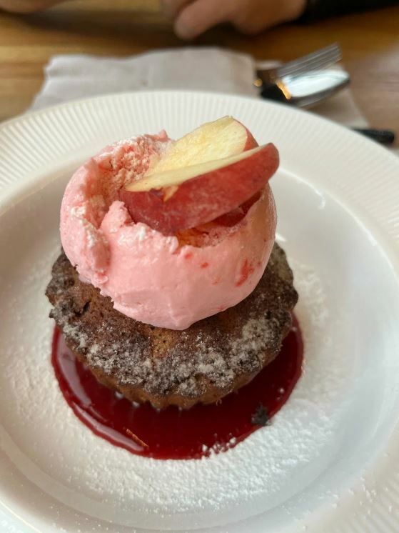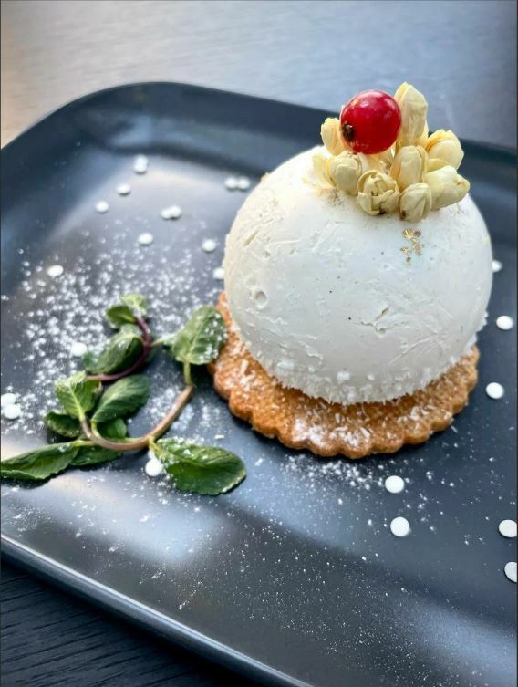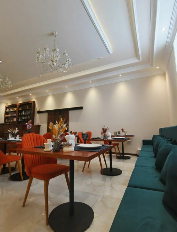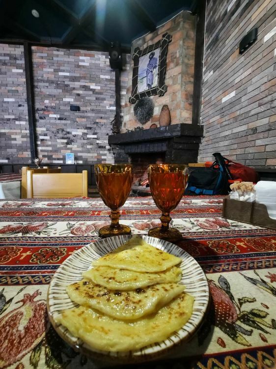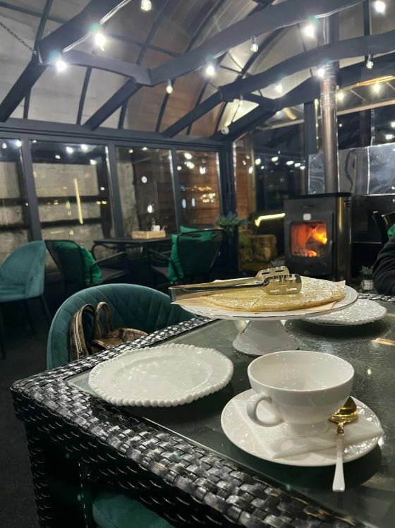 Приятный зал с камином. Очень вкусная еда с местными продуктами. Угощение от шефа к чаю. Прияный официант. Кавказкое гостеприимство