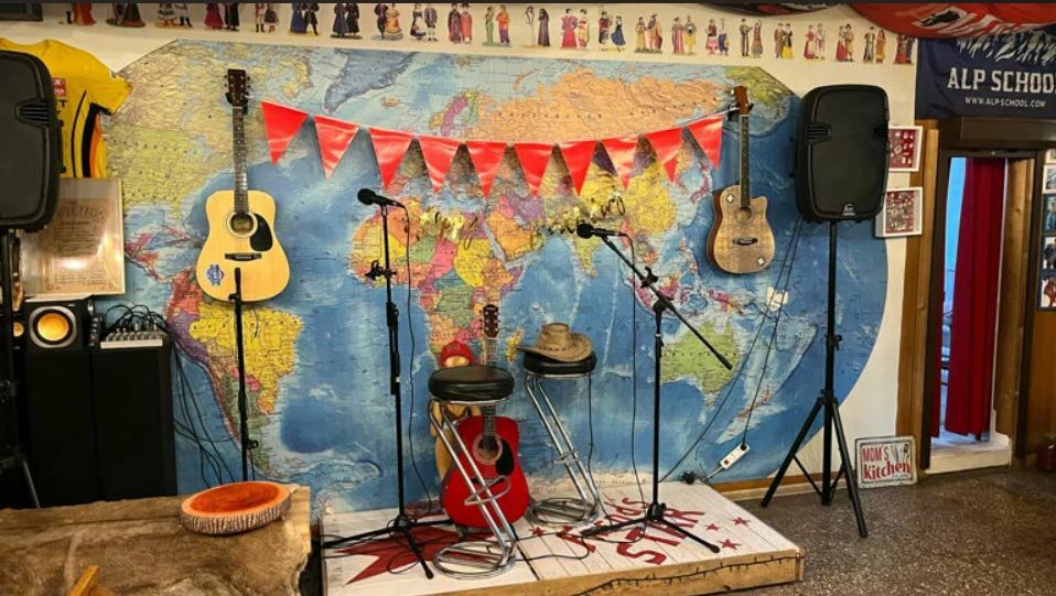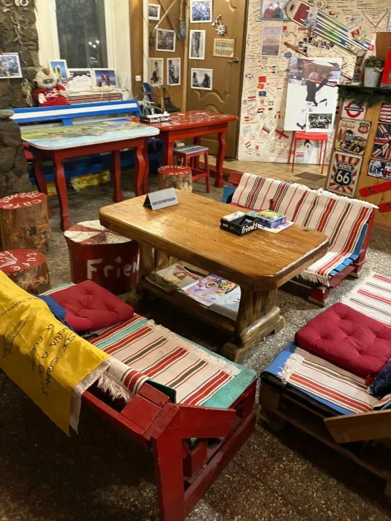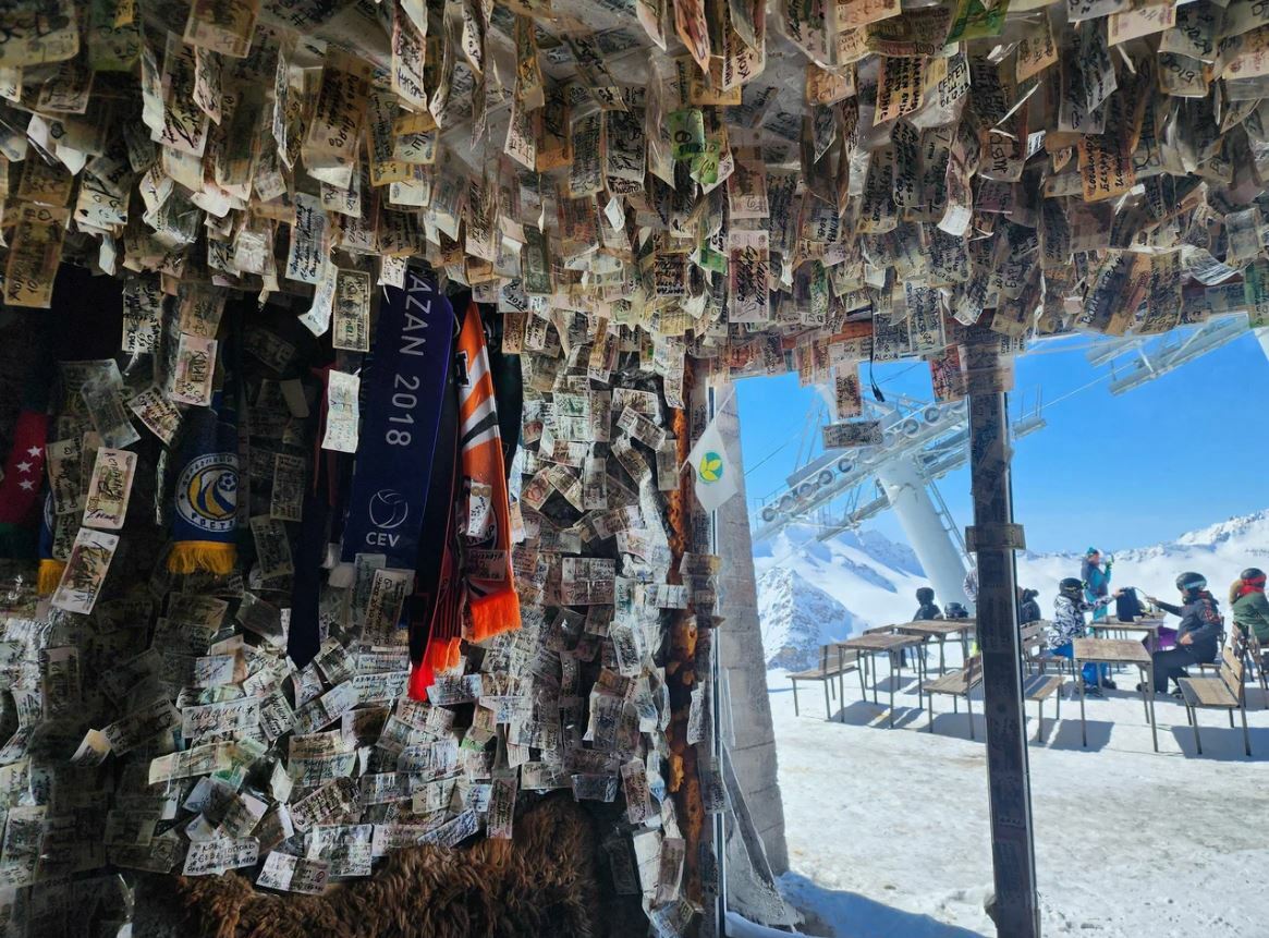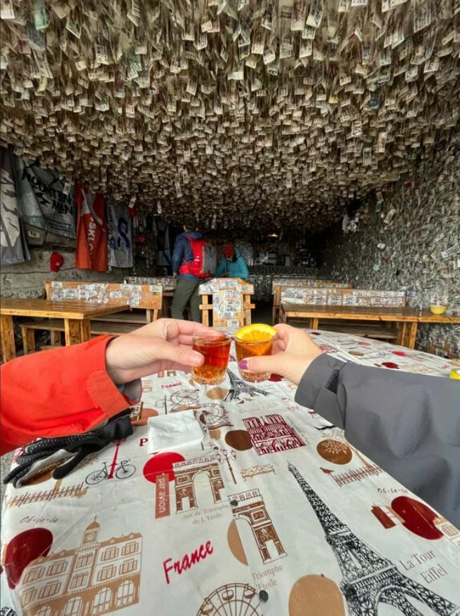 Это кафе наполнено духом лыжной и альпинистской культуры. Здесь отдыхают после подъёмов на вершину и катаний на склонах. Днём можно пообедать всей семьёй, изучить флаги и артефакты, которые оставляют тут гости.