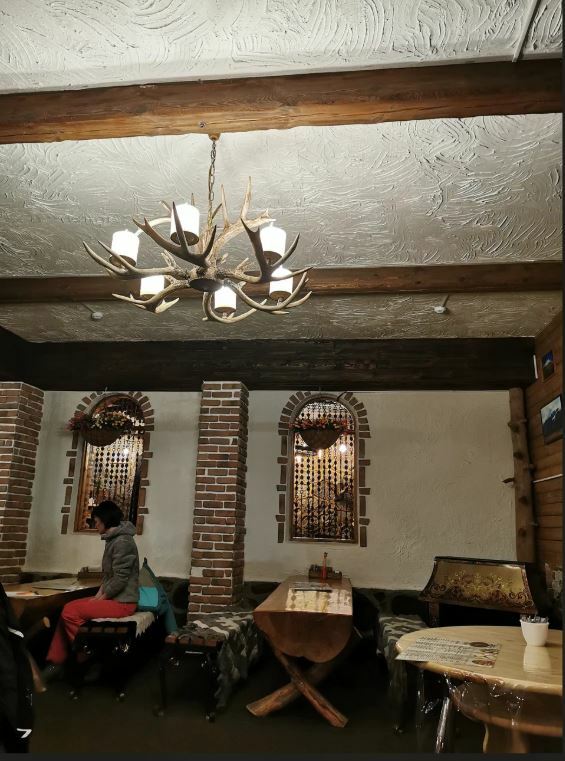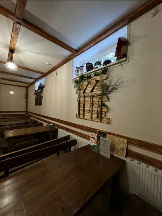 Заведение оформленно в ламповой отмосфере, с элементами горнолыжно альпенистской атрибутики.