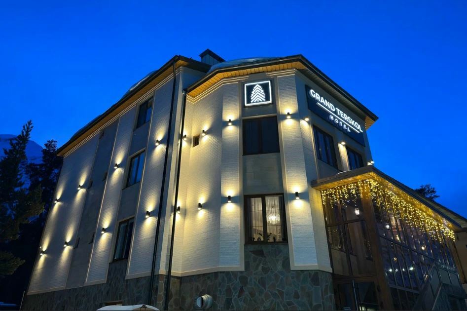 Ресторан «Гранд Терскол» расположен на цокольном этаже отеля и предлагает своим гостям разнообразное меню, включающее в себя блюда кавказской кухни, такие как хычины, лагман и форель, а также десерты, такие как медовик и кленовый пекан.
