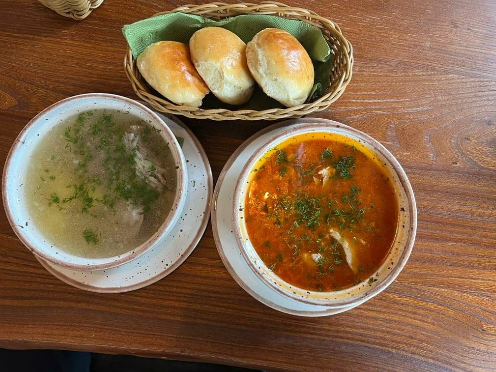 В меню представлены различные блюда, такие как шорпа, лагман, цезарь и хычины, которые готовятся с душой и подаются в красивой глиняной посуде. Гости отмечают, что порции здесь большие, а цены приемлемые.