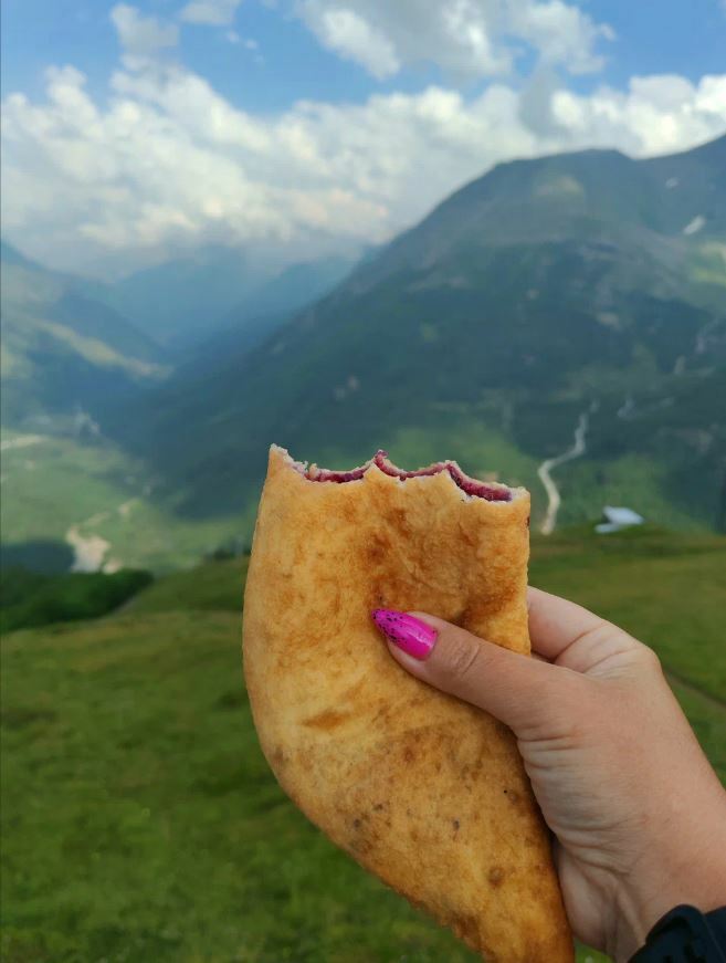 Кафе «Пирожковая» — это место, где можно насладиться потрясающим видом на Кавказские горы, а также попробовать вкусные пирожки и чебуреки с различными начинками, такими как малина, черника, брусника и мясо.