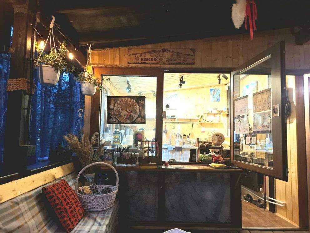 Здесь можно насладиться чашечкой кофе, используя сорта премиум-класса, а также попробовать вкусные десерты, такие как профитроли и чизкейки. Кроме того, гости отмечают, что из окон открывается прекрасный вид на горы, а на втором этаже можно поиграть в настольные игры.