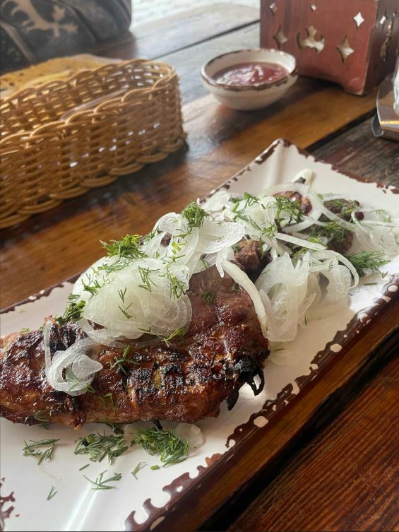 Они также рекомендуют попробовать кукурузный суп, шурпу, люля-кебаб, каре ягненка и форель на углях. В заведении есть веранда на втором этаже, где можно насладиться красивым видом на горы.